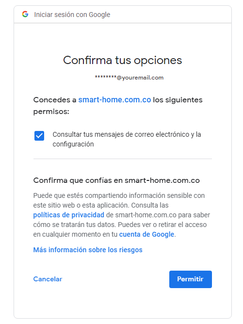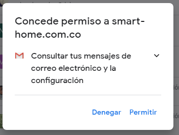 5. Autorizacion de permisos para que SmartHome pueda integrar la lectura de la cuenta de correo.